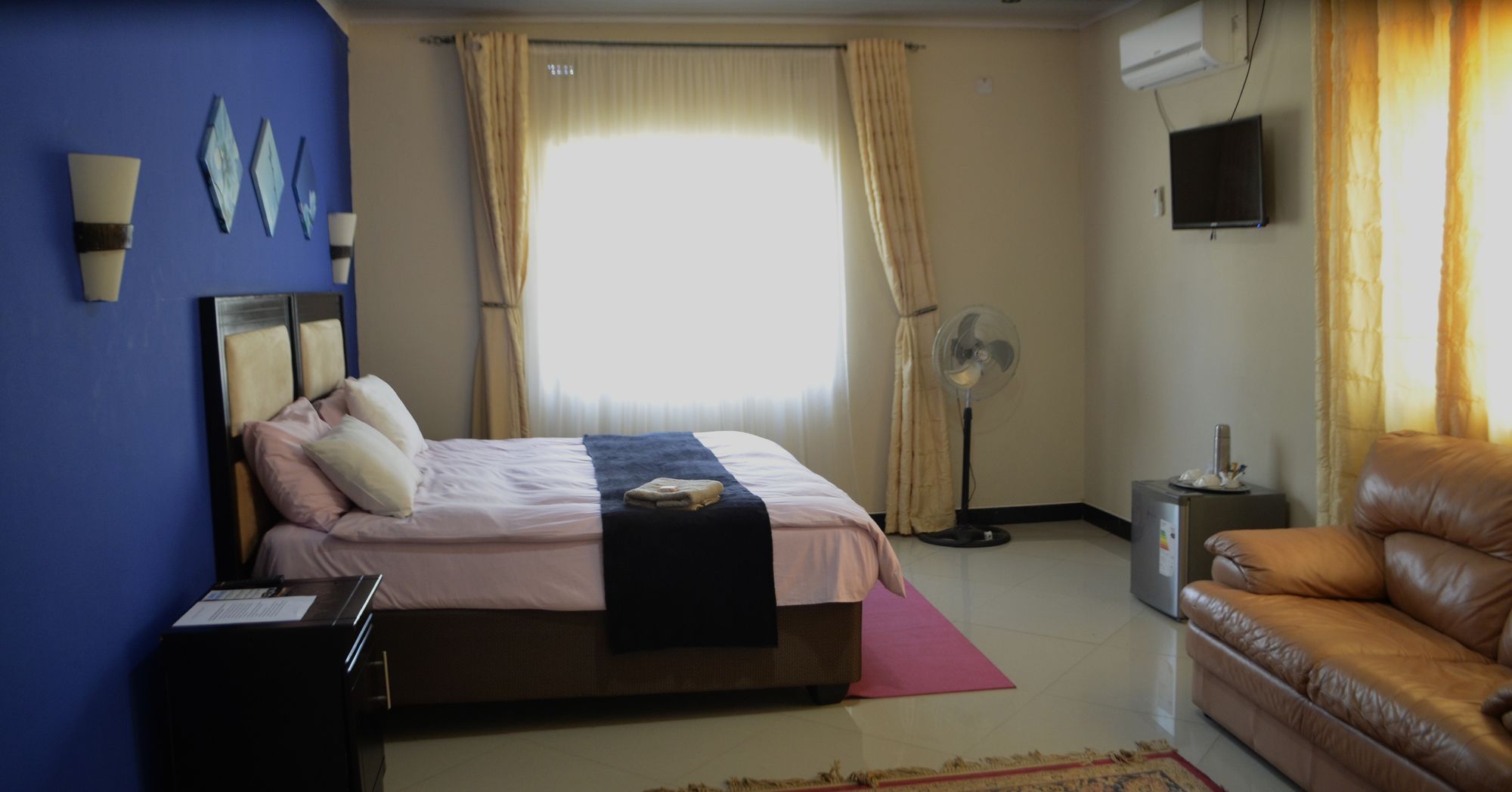 With a stay at Royal Olympia Lodge in Livingstone, you'll be within a 5-minute drive of Mukuni Park Curio Market and Livingstone Museum. This bed & breakfast is 2.3 mi (3.7 km) from Maramba Cultural Museum and 2.9 mi (4.6 km) from Railway Museum. Make yourself at home in one of the 10 air-conditioned rooms featuring refrigerators and flat-screen televisions. Complimentary wireless Internet access keeps you connected, and satellite programming is available for your entertainment. Bathrooms have bathtubs and complimentary toiletries. Conveniences include electric kettles, housekeeping is provided daily, and irons/ironing boards can be requested. Enjoy recreation amenities such as an outdoor pool or take in the view from a terrace. This bed & breakfast also features complimentary wireless Internet access, a picnic area, and barbecue grills. Getting to nearby attractions is a breeze with the area shuttle (surcharge). At Royal Olympia Lodge, enjoy a satisfying meal at the restaurant. A complimentary English breakfast is served daily from 7 AM to 9 AM. A roundtrip airport shuttle is provided for a surcharge (available on request), and free self parking is available onsite.